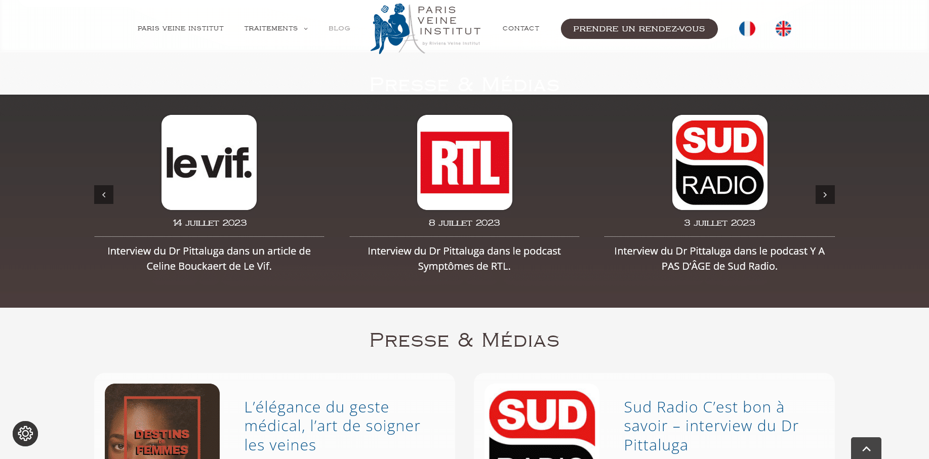 Création du site internet du Paris Veine Institut